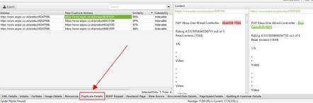 Por último, para poder visualizar de manera sencilla el “Contenido casi similar” la herramienta ha añadido en la parte inferior una pestaña de “Contenido duplicado” donde si visualizará el fragmento de contenido de que se ha detectado como igual o como muy similar: