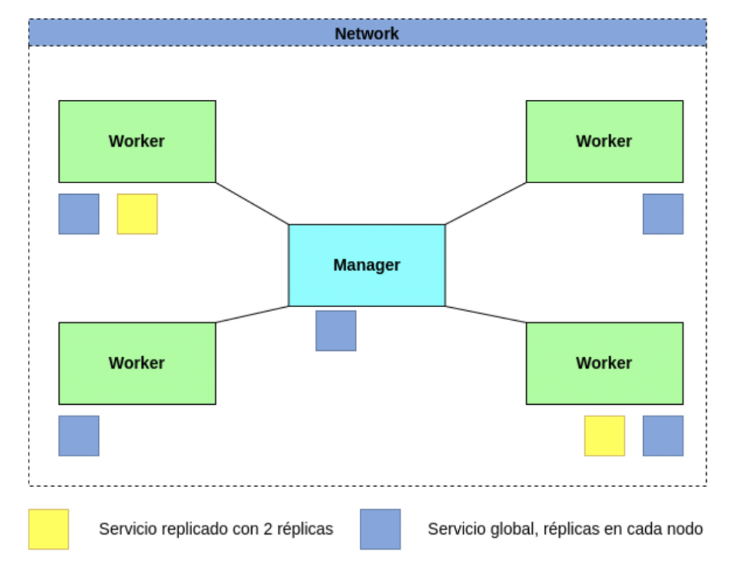 - Servicios globales: Swarm ejecutará una tarea en todos y cada uno de los nodos del clúster que cumpla con las restricciones establecidas como la ubicación del servicio o recursos.
