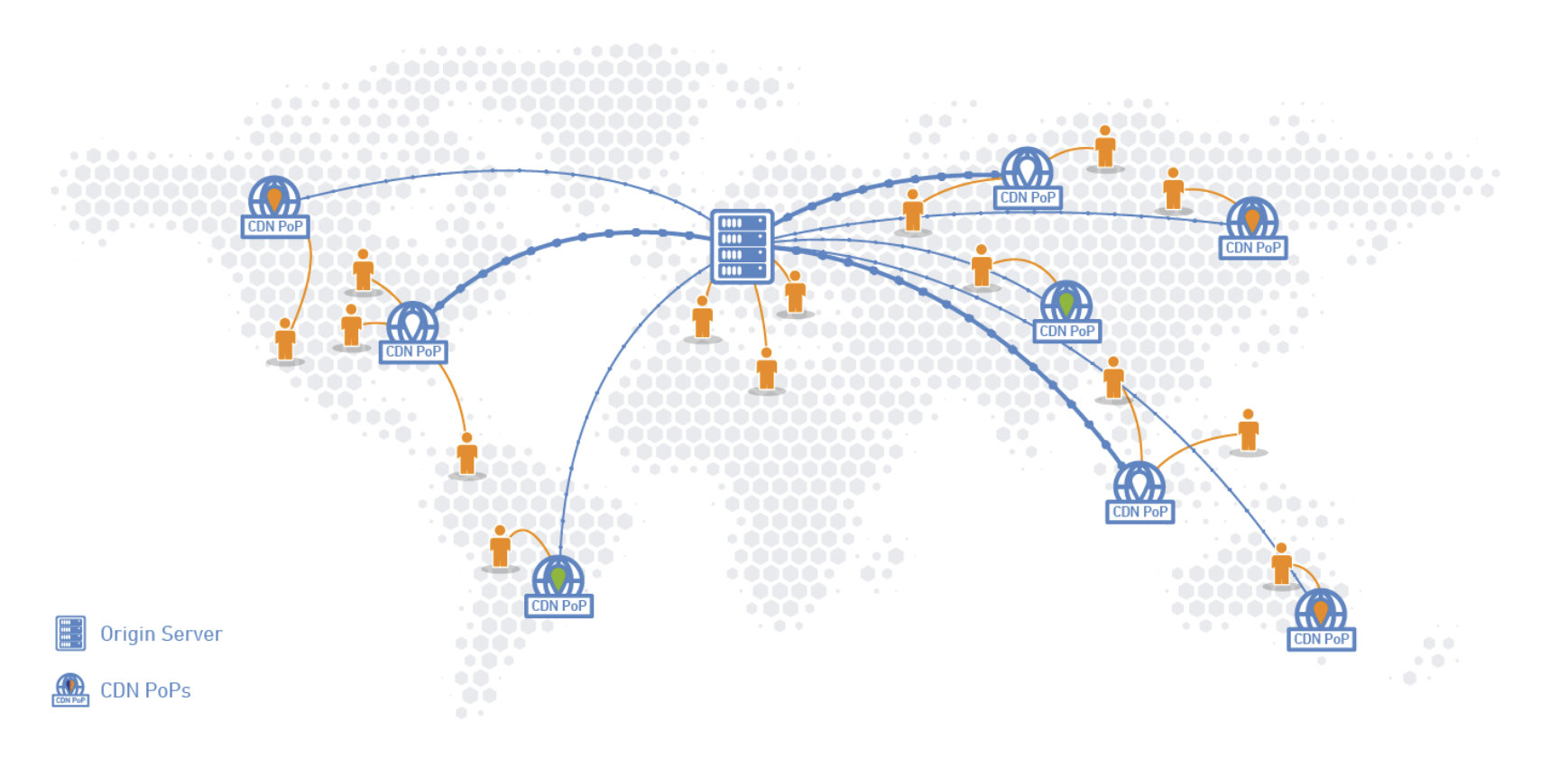 Podemos decir que una CDN es una capa con un sistema distribuido de nodos que se sitúan entre el usuario y el origen para ofrecer las siguientes ventajas: