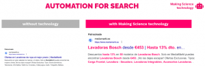 Desde Making Science se les propuso implementar la tecnología de ad-machina que consigue automatizar en tiempo real la creación de anuncios en Google Ads teniendo en cuenta todo el portfolio de producto y sus atributos, y todas las ofertas de los mismos. Conseguimos así dar respuesta a la agilidad que necesitan para un portfolio de más de 30.000 productos e innumerables ofertas.
